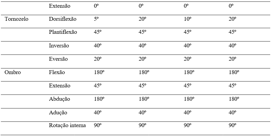 Tabela 2: Avaliação da Amplitude de Movimento Articular