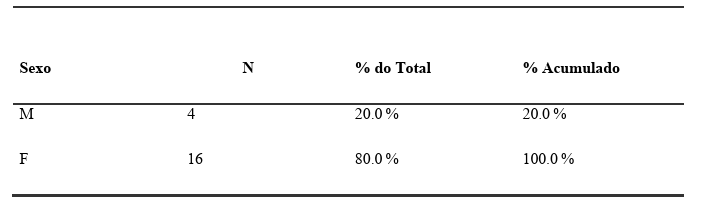 Tabela 1.  Distribuição de frequência por sexo dos pacientes submetidos à intervenção com o método Pilates no tratamento da lombalgia