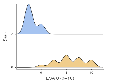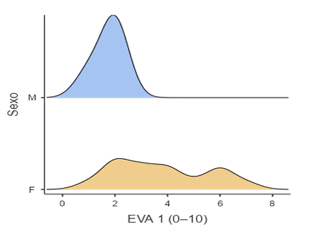 Do ponto de vista psicossocial, estudos indicam que mulheres tendem a expressar e reconhecer a dor de maneira  mais abrangente, o que pode refletir em maiores escores na EVA (MCPHEE, GRAVENNIELSEN 2019).