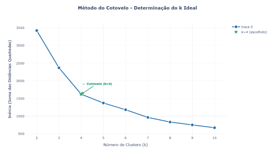 FIGURA 2: Método do Cotovelo – Gráfico mostrando inércia vs número de clusters com destaque para k=4