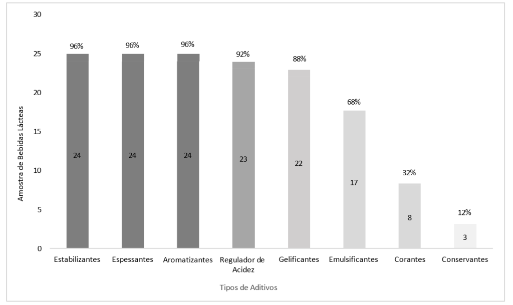 No caso do aditivo alimentar, além de apresentar funções técnicas adequadas ao produto e ser permitido pelas legislações vigentes no país de comercialização para o alimento em questão, é importante verificar a concentração permitida desse aditivo especificamente no produto a ser aplicado. No presente estudo, os aditivos mais comuns identificado nos produtos foram: