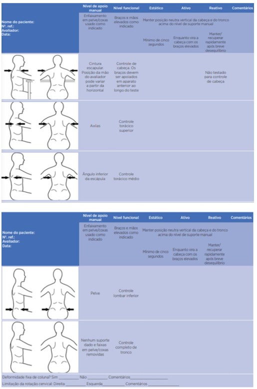 BUTLER, P. B. et al. Segmental assessment of trunk control in children with cerebral palsy: a clinical tool. Clinical Rehabilitation, v. 24, n. 2, p. 150-158, 2010.