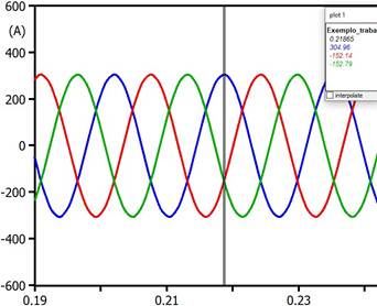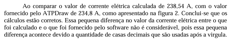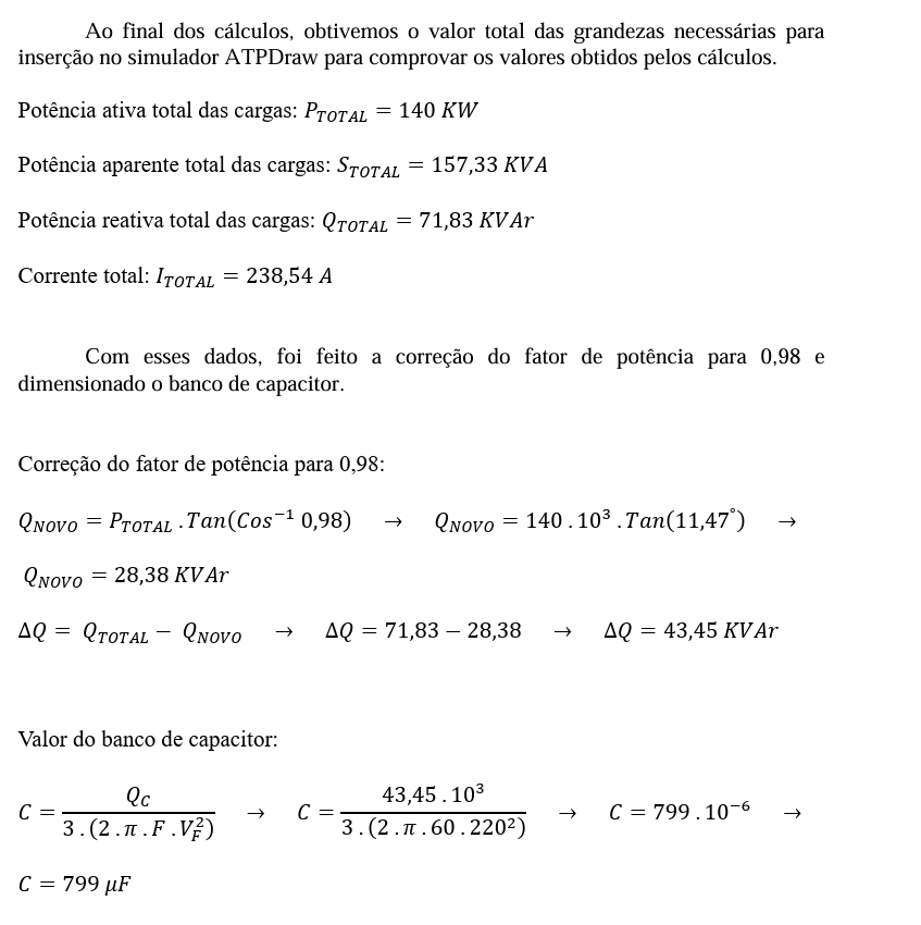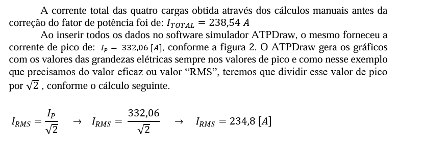Após a correção do fator de potência para 0,98, foi obtido uma corrente elétrica do total das quatro cargas de 217,053 [A] (figura 4). Comparando esse valor com o do gráfico da figura 4, conclui-se que os cálculos estão corretos e que teve um decremento no valor da corrente elétrica.