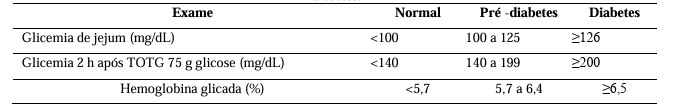 Tabela 1 – Valores de referenciais adotadas pela sociedade brasileiras de diabetes e pela associação americana de diabetes.
