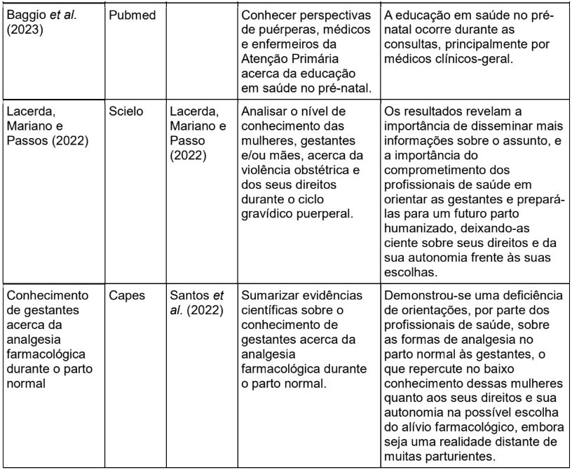 Como limitações, destaca-se o reduzido número de estudos incluídos (n=5), o que pode restringir a generalização dos achados, além do recorte temporal (2020-2025), que exclui publicações anteriores potencialmente relevantes. Sugere-se, para pesquisas futuras, a ampliação das bases de dados consultadas, a inclusão de estudos qualitativos para aprofundar as percepções das gestantes e a avaliação de intervenções educativas no pré natal, visando mensurar seu impacto no conhecimento e na autonomia das mulheres. A efetivação dos direitos no SUS exige ações integradas entre gestão, profissionais e sociedade, pautadas em evidências científicas e no princípio da humanização.