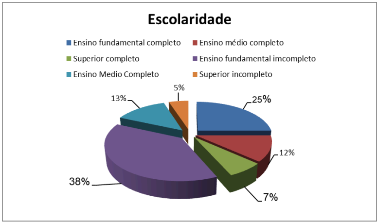 Com relação ao grau de escolaridade das participantes, o gráfico 2 mostra que dos 120 prontuários coletados, 38% das mulheres possuíam o ensino fundamental incompleto, 25% possui o ensino fundamental completo, apenas 12% referiu ter o ensino médio completo. A predominância de mulheres com baixa escolaridade pode influenciar diretamente a adesão e o uso correto dos métodos contraceptivos.