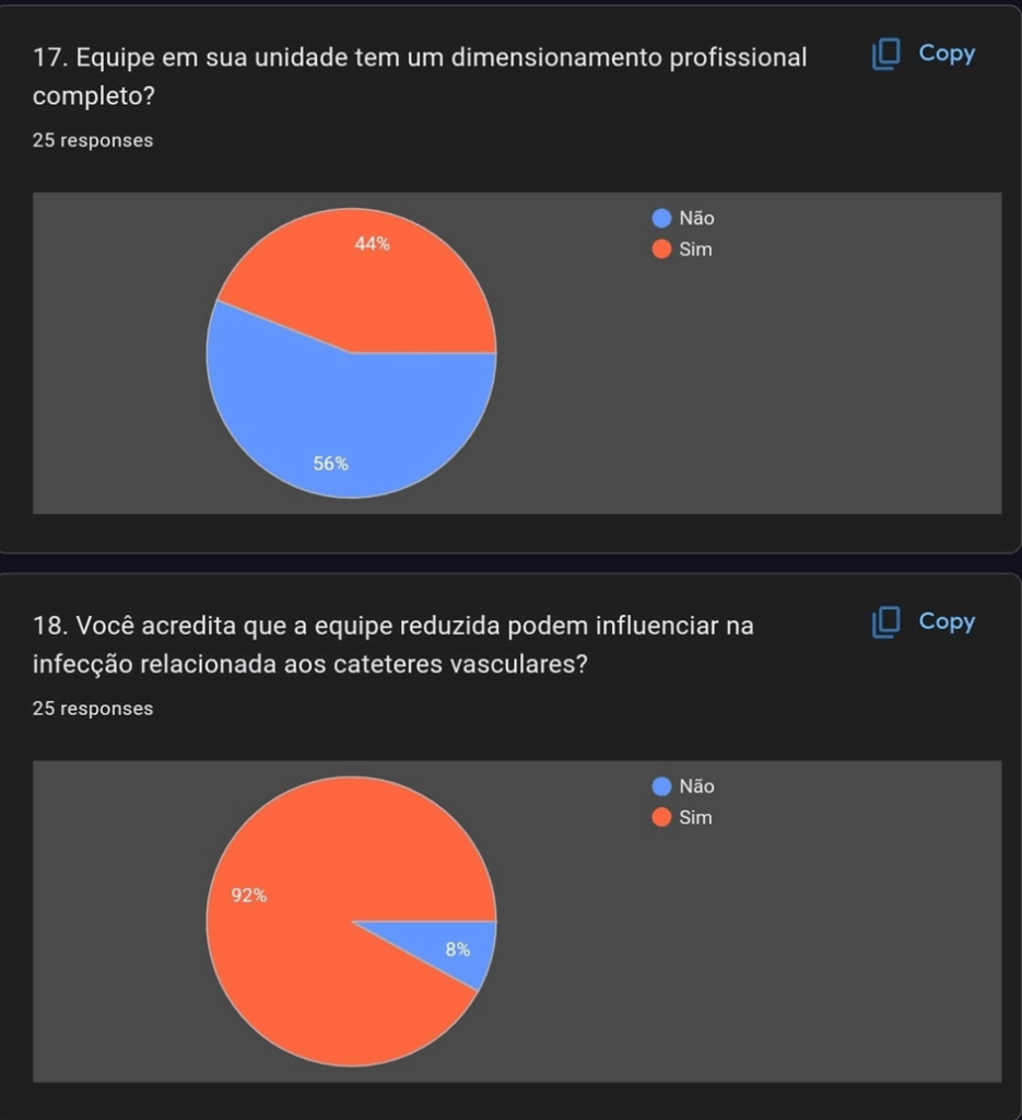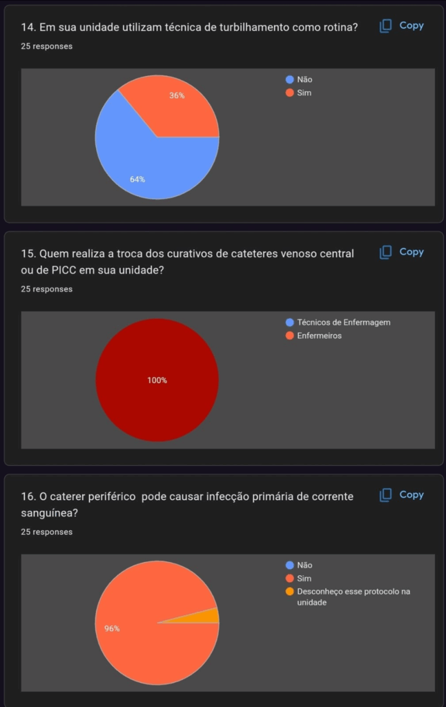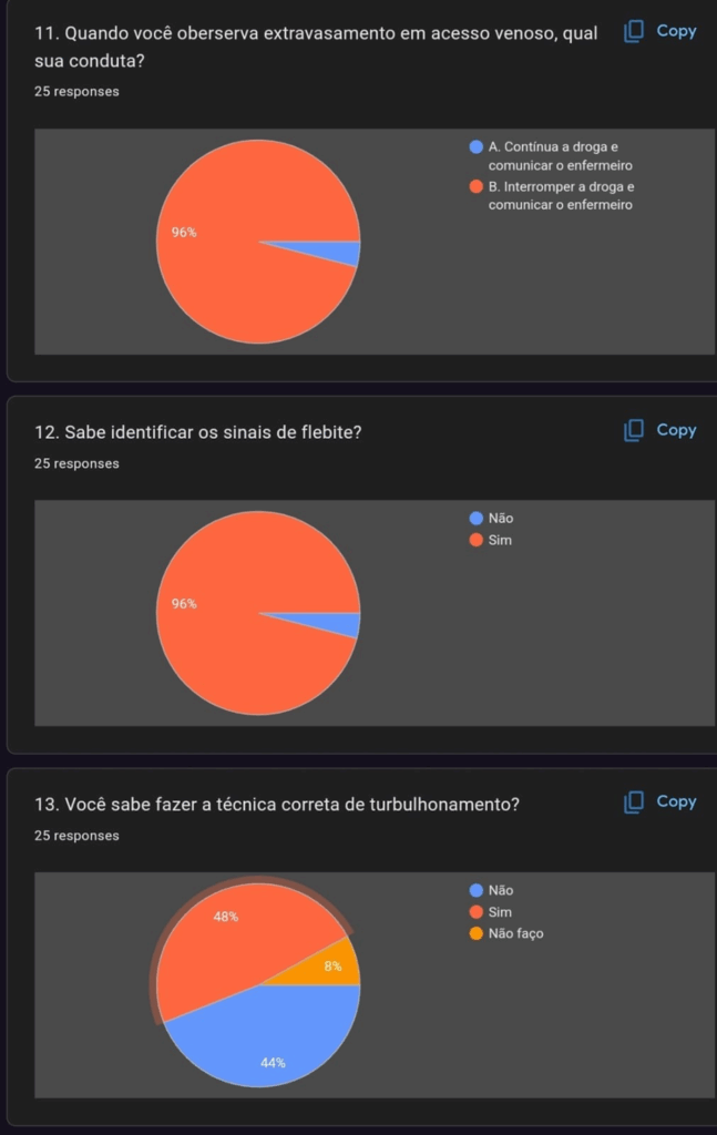Como parte da etapa de observação, também foi utilizado um questionário diagnóstico com a equipe de enfermagem, com o objetivo de identificar percepções e práticas relacionadas ao uso de cateteres venosos e à adesão às medidas de prevenção de infecção.