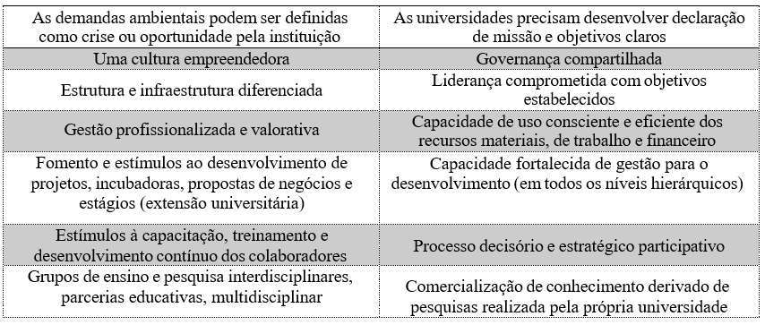Consoante Virgílio; Fialho; Burigo (2023, p. 8) “[…] instituição capaz de gerar direção estratégica, formulando objetivos acadêmicos claros e transformando conhecimento gerado na universidade em valor econômico e social”. Logo, enxergam no trabalho dos seus membros, no emprego consciente dos recursos e na adoção eficiente das tecnologias um campo propício para a adoção da cultura intraempreendedora e que inspire mudanças.