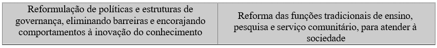 Ainda consoante Martins (2023), ao abordar as transformações e perspectivas que estão nas percepções quanto às universidades empreendedoras identificou que a adoção desta concepção tem impactado a organização interna das universidades na medida em que os colegiados, dirigidos por docentes e intermediados por um estamento burocrático, vem sendo substituídos por valores de eficiência e padrões de produtividade.