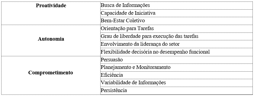 3. Proatividade: capacidade individual de agir com antecipação a um comando de um superior imediato, tomando para si a iniciativa e assumindo responsabilidades (Lopes et al., 2023).