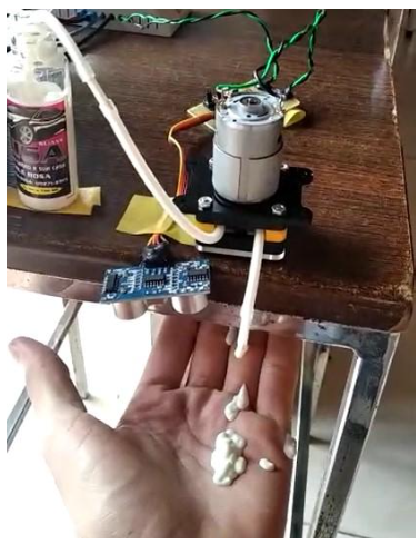 Figura X – Teste de dispensação automática de protetor solar realizado pelo protótipo.