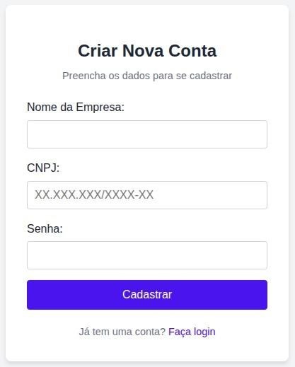 A tela de cadastro foi projetada para permitir o registro de novas empresas no sistema de forma simples, segura e eficiente.