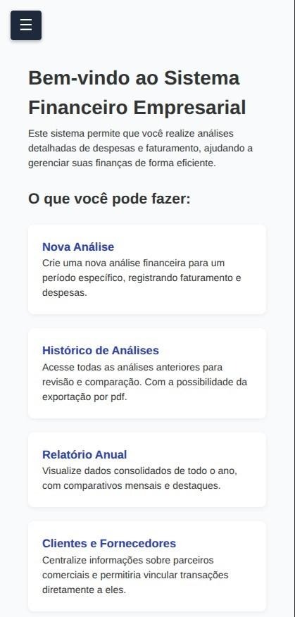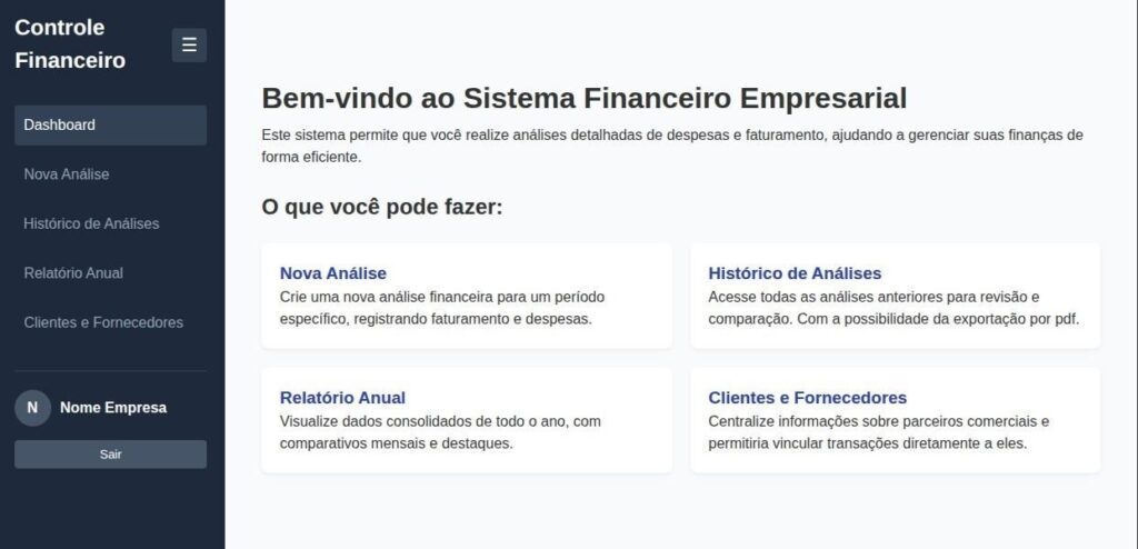 Abstract: This paper presents the development of a web-based system for the financial management of micro and small businesses, focusing on simplicity, accessibility, and efficient financial control. The proposal aims to serve entrepreneurs who often lack the technical training or resources to adopt complex market solutions. The system was built in Python on the backend, with HTML5, CSS3, and JavaScript on the frontend, integrating libraries such as Plotly.js for interactive data visualization and jsPDF for automatic generation of PDF financial reports. The application adopts a layered architecture, favoring maintainability and scalability, in addition to offering a responsive and intuitive interface, adaptable to different devices. Main features include company registration, user authentication, revenue and expense tracking, annual report generation, and customer and supplier management. The results demonstrated that the tool contributes to more organized and accessible financial management, allowing small business owners to monitor their finances with greater accuracy, reducing errors, and optimizing analysis time.