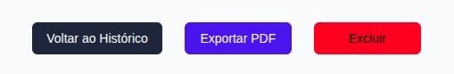 Diferente da tela original de análise, essa versão disponibiliza as opções de excluir ou exportar em formato PDF, ampliando o controle e a usabilidade dos dados salvos. Encontrado na Figura 9 e Figura 10.