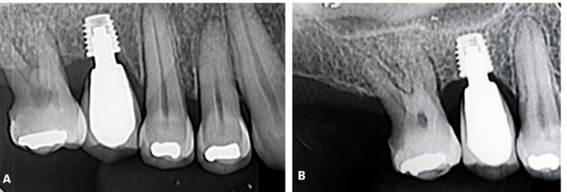 Figura 25. A, B) Radiografia periapical final.