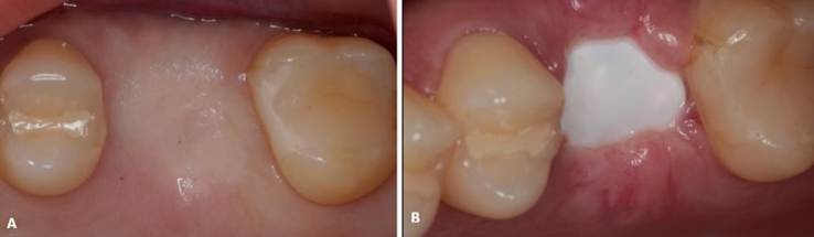Paciente P. A, gênero masculino, 52 anos de idade, procurou atendimento odontológico em consultório particular, em 2019, queixando-se da necessidade de reabilitação óssea do espaço edêntulo. Durante a anamnese, não foram constatados comprometimento sistêmico que limitasse intervenções cirúrgicas. Ao exame clínico, evidenciado ausência dentária do 16, com limitação óssea. Paciente encontrava-se em tratamento ortodôntico, em que, uma interação entre os profissionais das referentes especialidades foi realizada para planejamento do caso.