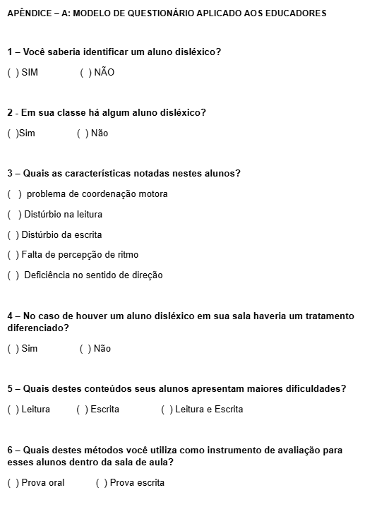 A partir desta pesquisa buscou-se alcançar os resultados esperados em relação aos professores, alunos disléxicos, onde através dos materiais usados compreender melhor a dislexia e seu contexto.
