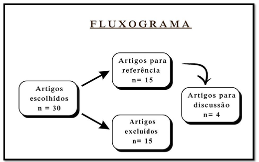 A Figura (1) apresenta o fluxograma dos artigos escolhidos, dividido em subgrupos artigos para discussão, de referência e também os excluídos.