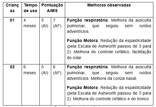 De acordo com os instrumentos de avaliação do programa, houve melhora nas funções respiratória e motora em ambos os casos (Quadro 02).