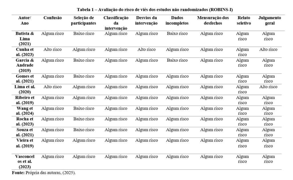 Tabela 1 – Avaliação do risco de viés dos estudos não randomizados (ROBINS-I)