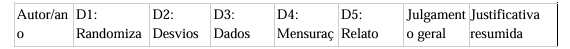 Tabela 2. Avaliação do risco de viés dos ensaios clínicos randomizados incluídos (ferramenta RoB 2.0 da Cochrane).