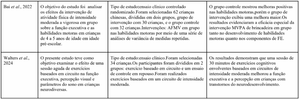 WALTERS, G. W. et al. Effect of an acute bout of exercise on executive function and sleep in children with attention deficit hyperactivity disorder and autism spectrumdisorder.ScienceDirect., v.27, 2024.Disponível em: https://doi.org/10.1016/j.mhpa.2024.100624.Acesso em: 06 de ago. de 2025.