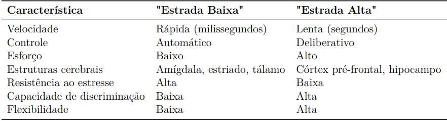 A análise dos estudos de Kahneman (2011) e LeDoux (2015) permitiu estabelecer uma clara distinção entre esses dois sistemas de processamento:
