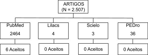 Figura 1. Fluxograma do processo de busca nas bases de dados PubMed/MEDLINE,LILACS, SciELO e PEDro.