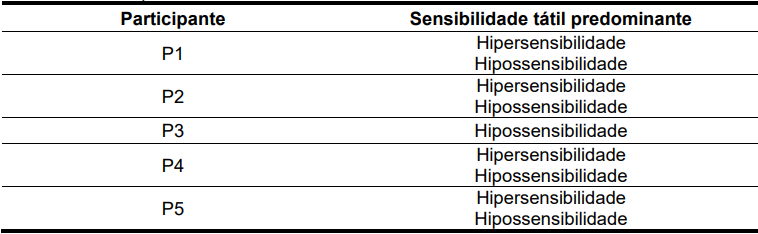 Essas informações possibilitaram fundamentar a análise da variável investigada, referente à forma como a imprevisibilidade da sensibilidade tátil interfere na regulação emocional e na qualidade de vida de adultos com TEA.