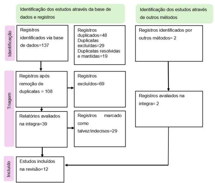 A quarta etapa foi a coleta de dados. Foi utilizada a plataforma Rayyan, que facilitou a organização e seleção dos 137 artigos encontrados nas bases de dados. A ferramenta ajudou na identificação dos estudos mais relevantes e eliminar os que não atendiam aos critérios estabelecidos para essa revisão.