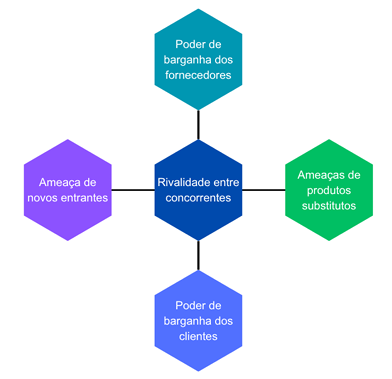 O modelo das Cinco Forças Competitivas, desenvolvido por Porter (2004), constitui uma ferramenta fundamental para análise da atratividade e intensidade competitiva de um setor. Este modelo explora as cinco forças que determinam a rentabilidade de uma indústria: rivalidade entre concorrentes existentes, ameaça de novos entrantes, poder de negociação dos fornecedores, poder de negociação dos compradores e ameaça de produtos ou serviços substitutos.