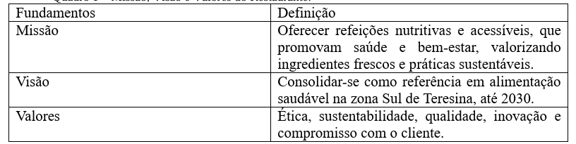 Entende-se por missão a razão de existir de uma organização, estabelecendo seu propósito fundamental e sua contribuição para a sociedade. Para novos negócios no setor de alimentação, a missão deve refletir claramente o valor agregado oferecido aos consumidores e o diferencial competitivo pretendido.