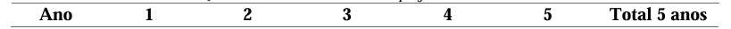 Tabela 4 – Projeção do Fluxo de Caixa durante 5 anos.