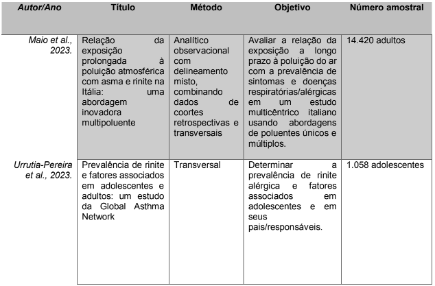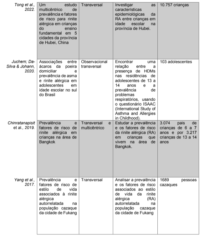 Palavras-chave: Fatores de risco; Rinite Alérgica; Criança; Adolescente; Adulto.