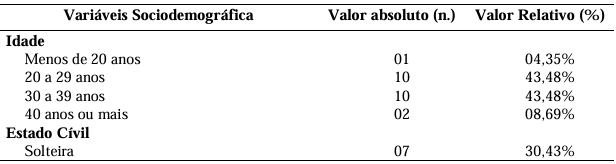 A amostra foi composta por 23 puérperas cadastradas em três unidades da Estratégia de Saúde da Família (ESF).