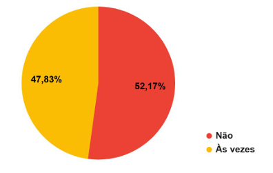 O gráfico evidencia que 52,17% das puérperas relataram não ter sentido tristeza ou desânimo desde o parto, enquanto 47,83% afirmaram vivenciar esses sentimentos às vezes.