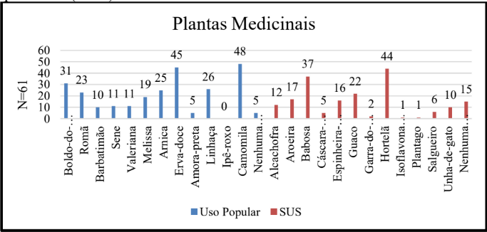 Figura 6: Gráfico de Barras Comparativo entre uso de Plantas Medicinais Populares e as utilizadas pelo SUS (n=61).