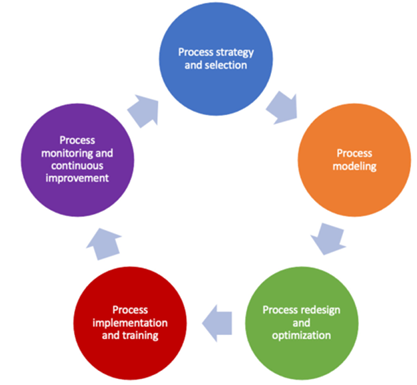 De acordo com Gudelj (2021) a gestão por processos, também conhecida como Business Process Management (BPM), refere-se a uma coleção de métodos, técnicas e ferramentas usadas para o design, execução, controle e análise de processos de negócio. É um conceito mais amplo do que apenas modelar e mudar processos de negócio. A ideia principal do BPM é desenvolver processos de negócio removendo atividades que não agregam valor e melhorando o fluxo de processos nas diversas funções organizacionais.. No setor público, a adoção de BPM representa uma oportunidade para modernizar a administração, aumentar a transparência e otimizar o uso de recursos públicos. O uso de BPM em instituições públicas é importante para a melhoria do desempenho e o aumento da qualidade dos serviços (Santos et al., 2025).