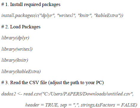 The scrip RStudio used for exporting the document is shown below: