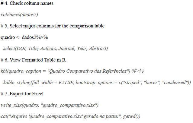 The findings reveal more than ten methodological approaches illustrating how these tools can refine the processes of searching, organizing, classifying, retrieving, and disseminating scientific knowledge within an RStudio-based workflow. The script presented below demonstrates how such integration can foster more creative and relevant solutions, as well as illuminate future research directions at this intersection.