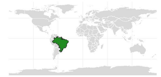 Figure 1. Spatial representation of Brazil highlighted within the global map.