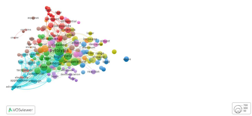 The management of urban and municipal waste significantly affects environmental quality and overall well-being. Further research on waste management pathways and degradation mechanisms, guided by sustainability principles, remains essential. Thermal or catalytic pyrolysis represents a promising approach for the reutilization of discarded materials. This study reviews articles published between 2005 and 2025 to analyze potential correlations and advancements in the application of pyrolysis for energy recovery. Figure 2. shows articles exported for an RStudio script and then visualized using VOSviewer.