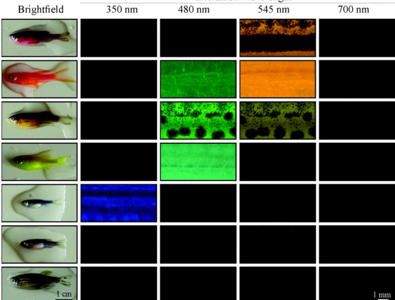 Imagem 2 – Resposta espectral de diferentes GloFish sob excitação luminosa