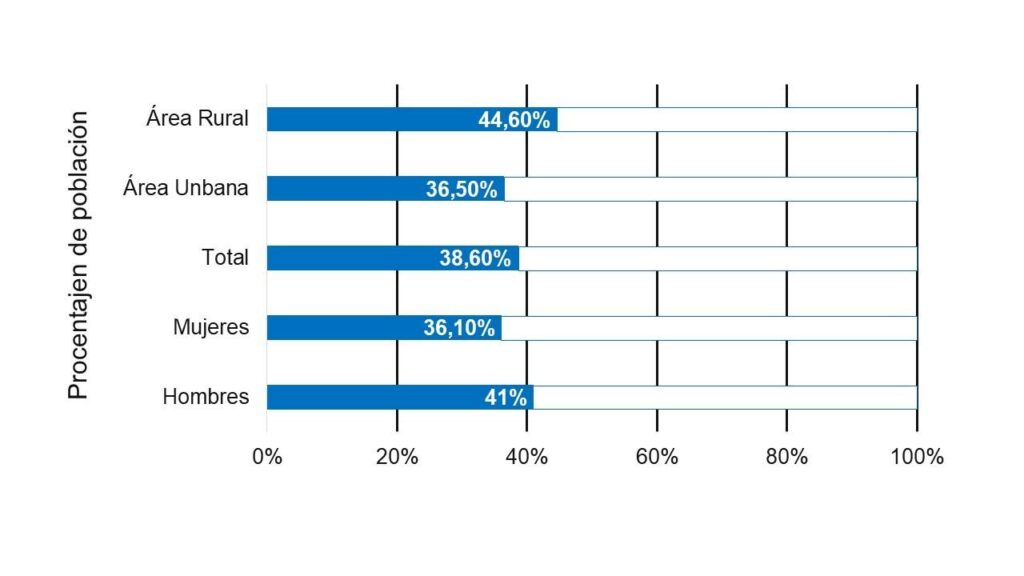 En Paraguay, el control de la hipertensión es gestionado por el Programa Nacional de Prevención Cardiovascular. Según datos del censo de 2024, de los siete millones de habitantes, el 38,6% son hipertensos, con mayor prevalencia en hombres (41%) y en zonas urbanas (36,5%) (Figura 1). En áreas rurales, la prevalencia alcanza el 44,6%, destacando barreras de acceso a los servicios de salud (Paraguay, 2023).