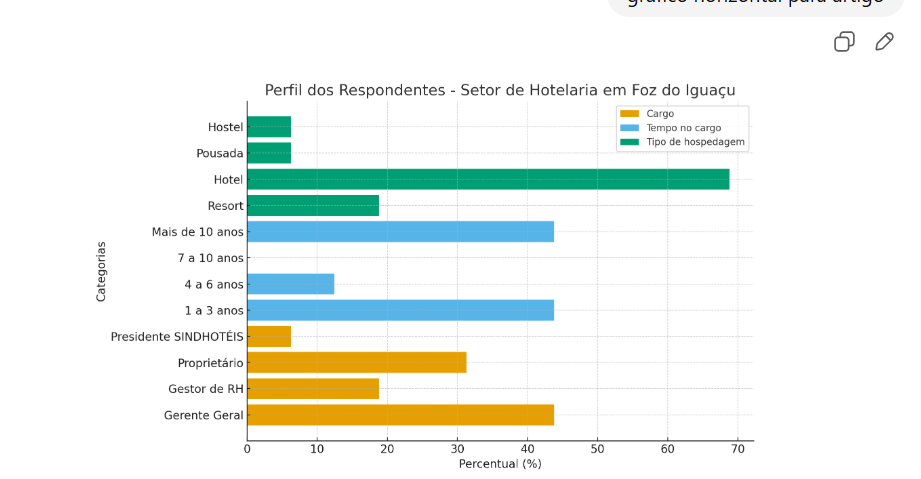 Cabe destacar a dificuldade encontrada na obtenção das respostas da pesquisa. Apesar de o município de Foz do Iguaçu contar com 136 meios de hospedagem cadastrados, apenas 16 responderam ao questionário, mesmo após diversas tentativas de contato e reenvio do instrumento de coleta. Essa limitação reforça o desafio de engajamento dos gestores hoteleiros em pesquisas acadêmicas