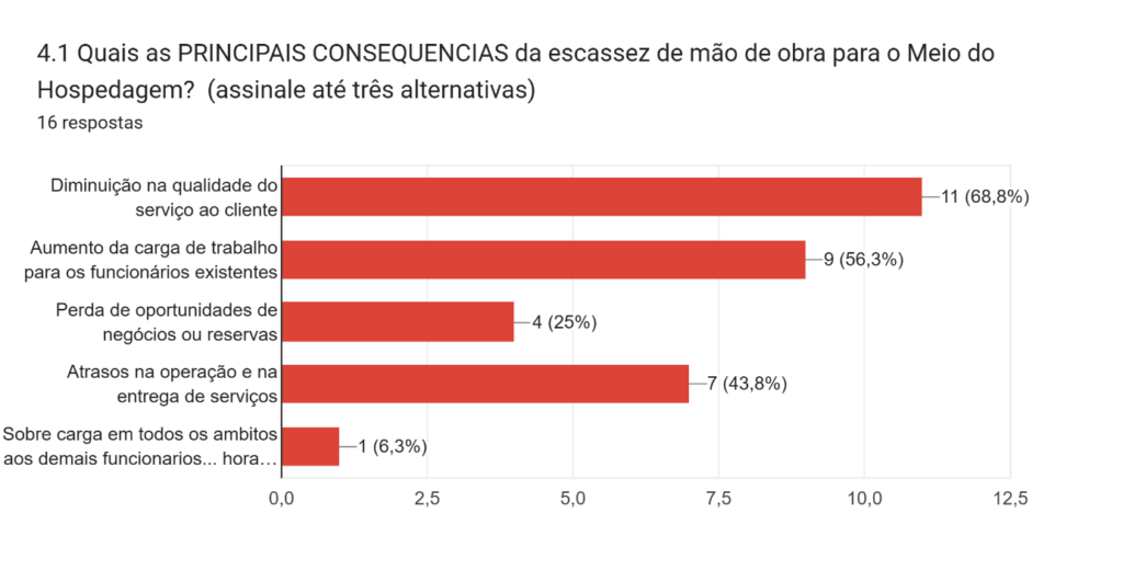 De maneira geral, os resultados mostram que a falta de mão de obra não afeta apenas o desempenho interno das empresas, mas também afeta impacto desempenho interno das empresas, mas também impacta a satisfação dos hóspedes e a competitividade dos meios de hospedagem em um destino turístico exigente
