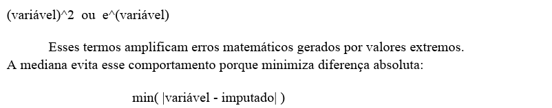 3. Logo, a imputação por mediana tende teoricamente a produzir maior precisão e estabilidade, especialmente em bases públicas com alta presença de inconsistências.