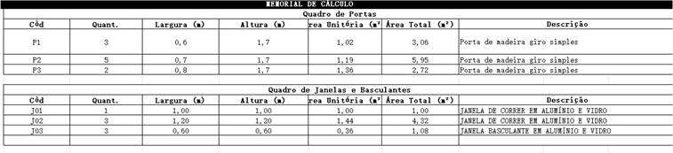 Figura 4 – Quadro de esquadrias feito manualmente no AutoCAD. Sem escala.