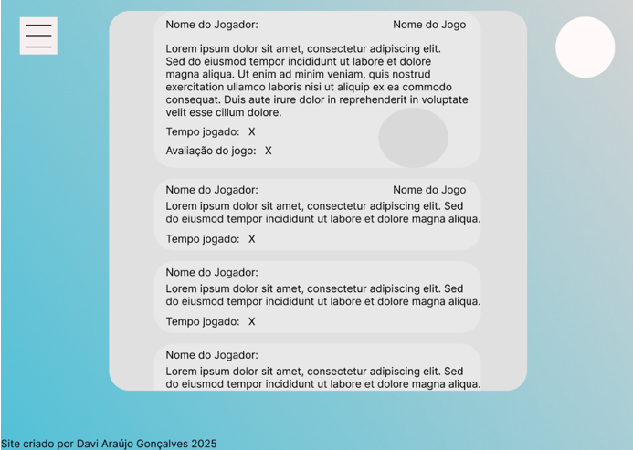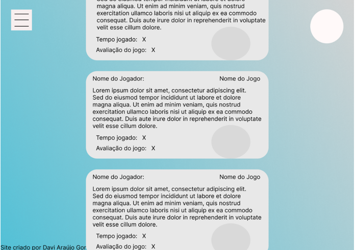 Inicialmente, o projeto foi prototipado utilizando a ferramenta “Figma”, uma plataforma online que auxilia na visualização dos projetos de criação de interfaces de usuário, de um jeito mais intuitivo e simples. Um protótipo da tela inicial (Figura 1) foi desenvolvido, onde vão estar os jogos, e da tela onde os usuários podem comentar e dividir experiências (Figura 2-4).