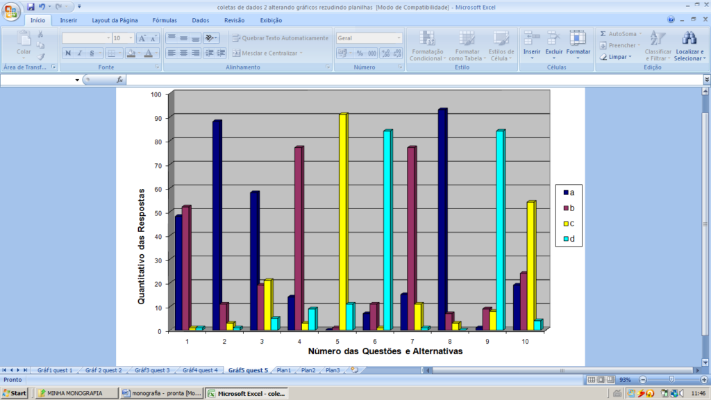 Tabela 4: Total de cada alternativa marcada no questionário 5